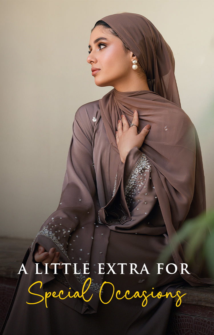 The Amethyst Glow abaya is a perfect blend of modern style and traditional elegance. The embroidery features a mix of threads and colors, designed to match the latest trends. The Kali design on the sleeves and daman (hem) adds intricate beauty and sophistication, enhancing the...