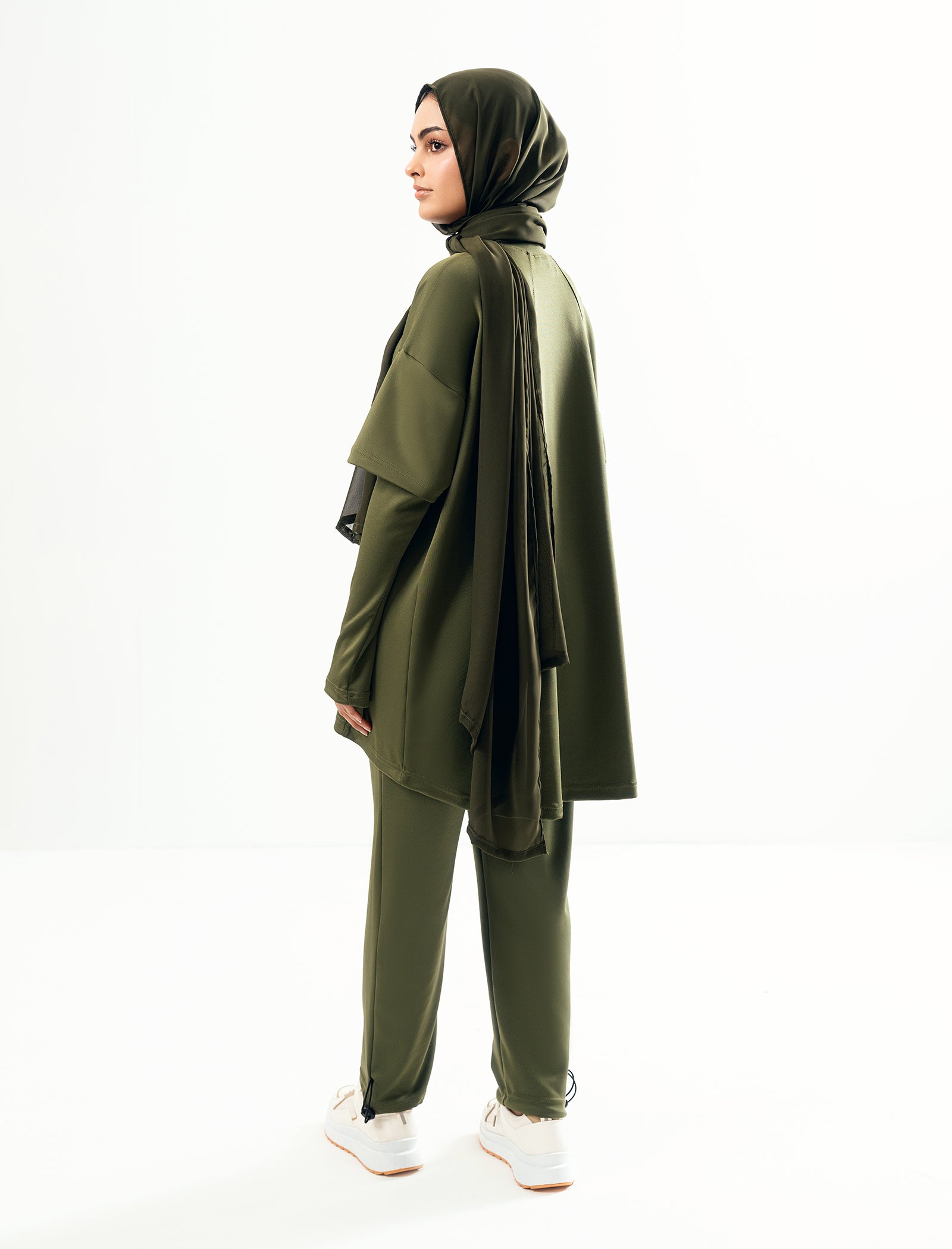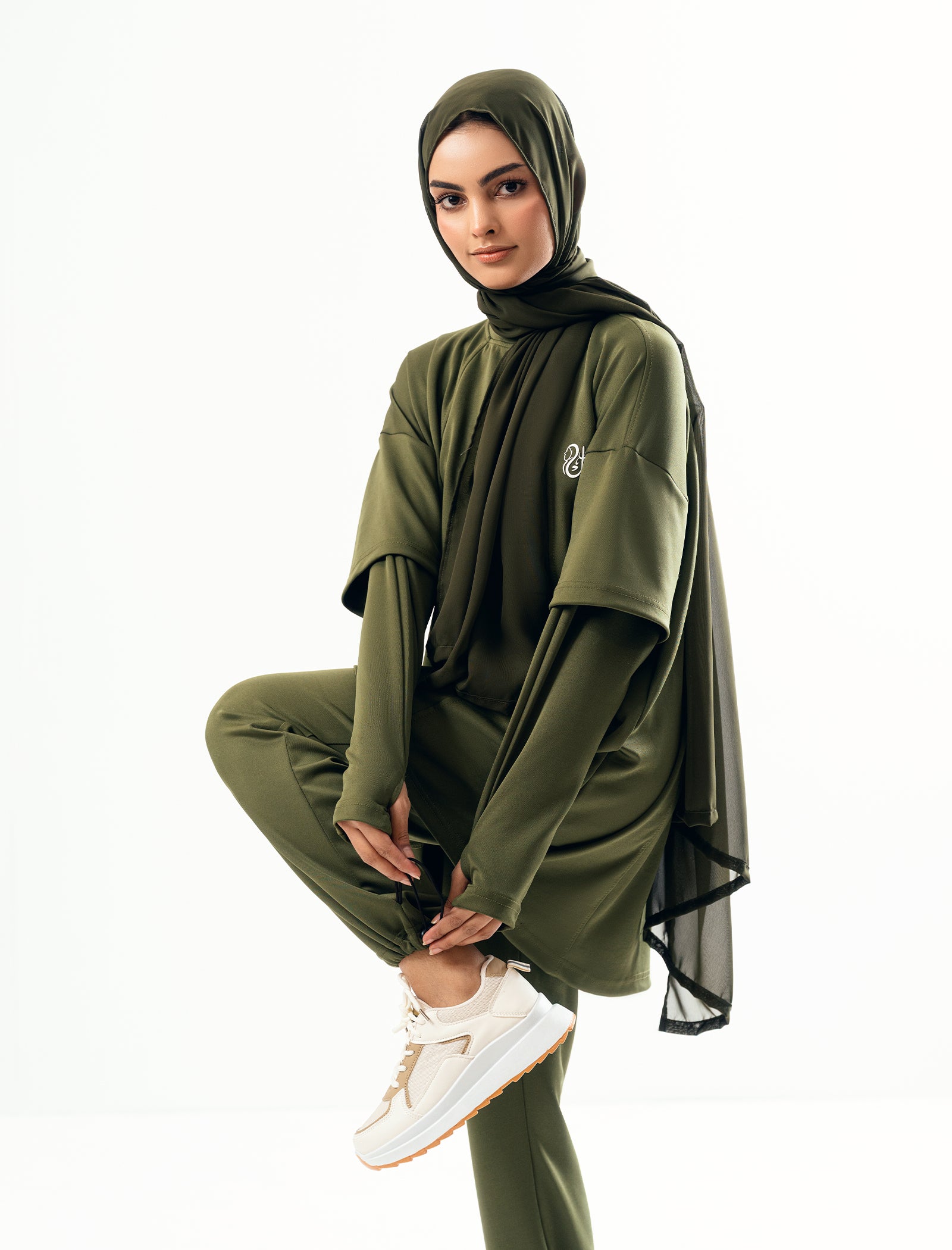A modern take on modest athleisure, this active set is designed with a relaxed silhouette that offers full coverage while ensuring breathable comfort, making it perfect for workouts, travel, and everyday movement.