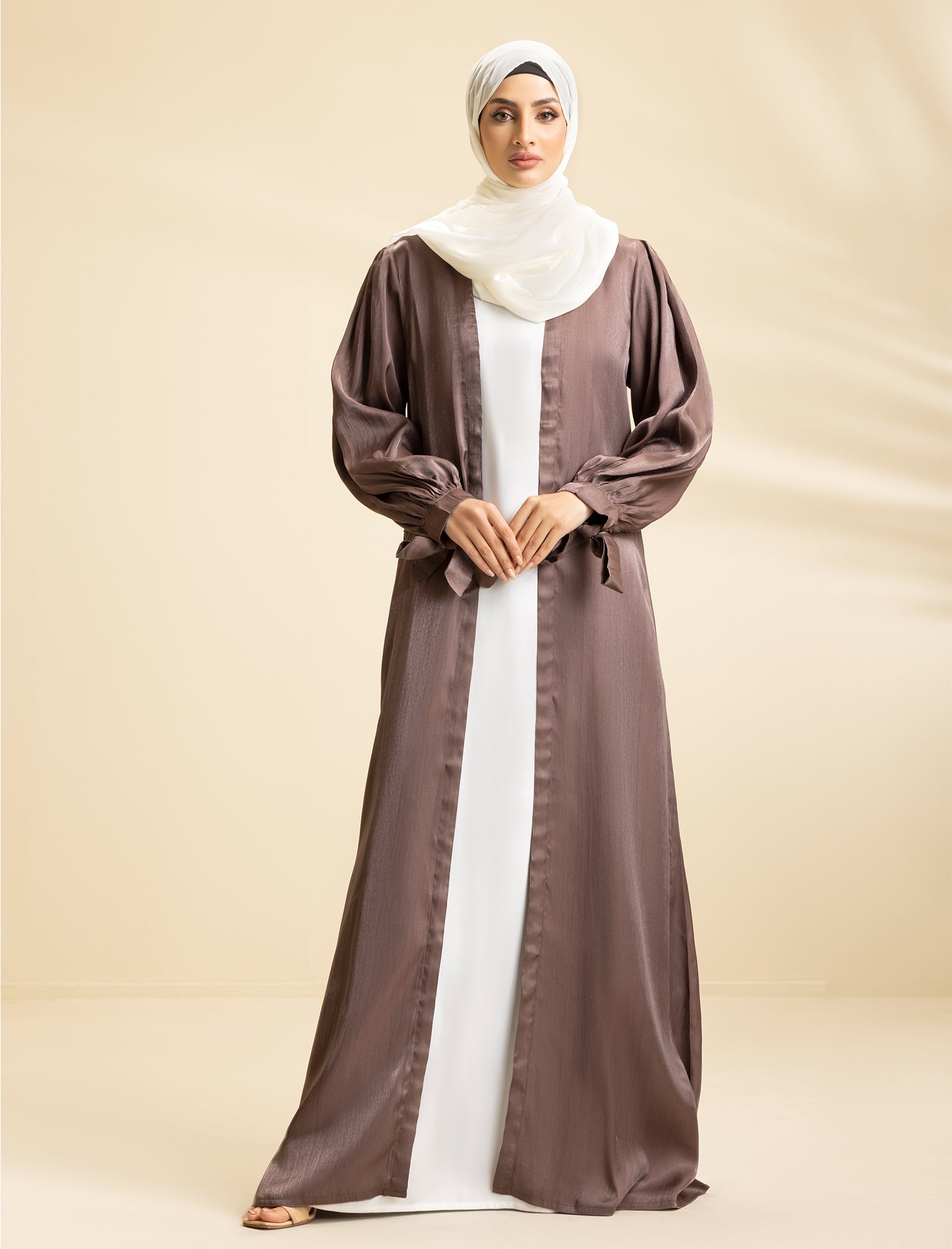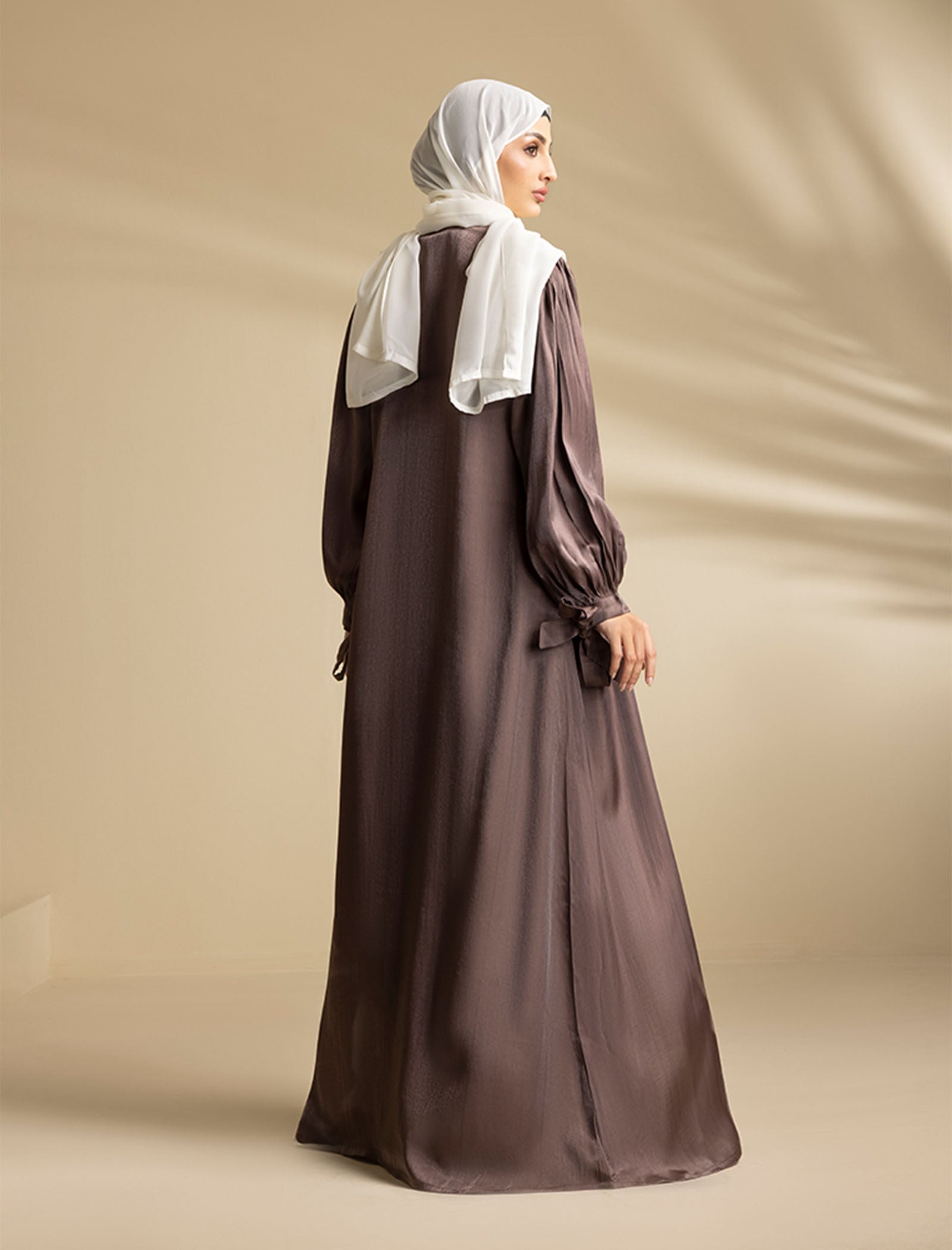 This stunning 3-piece abaya set is ideal for festive occasions or casual get-togethers with friends. The rich Lava Silk fabric ensures both comfort and luxury, making it a must-have addition to your wardrobe. Whether you're attending a festive event or simply enjoying a day out, this abaya offers a chic and graceful silhouette, perfect for creating an elegant and refined look.