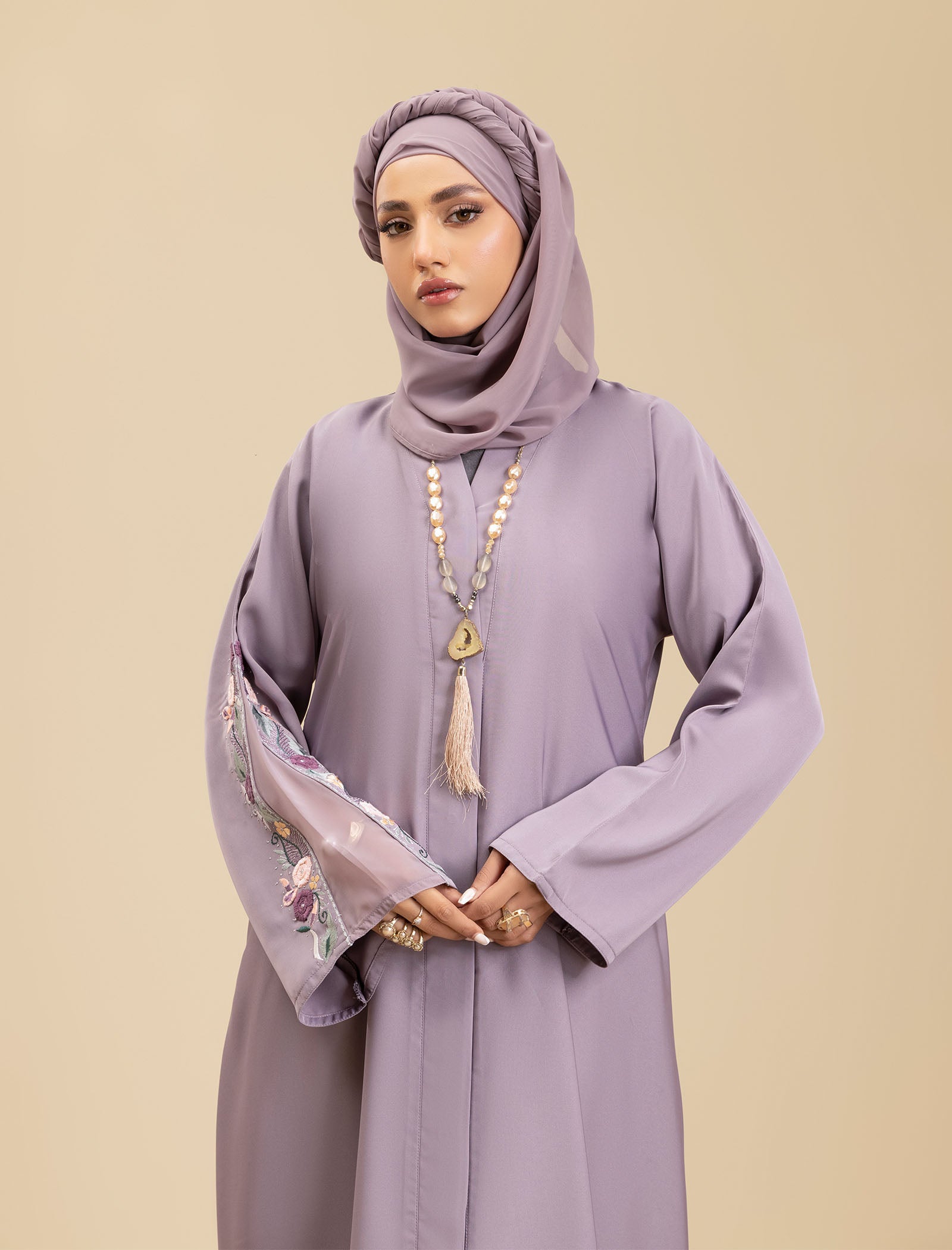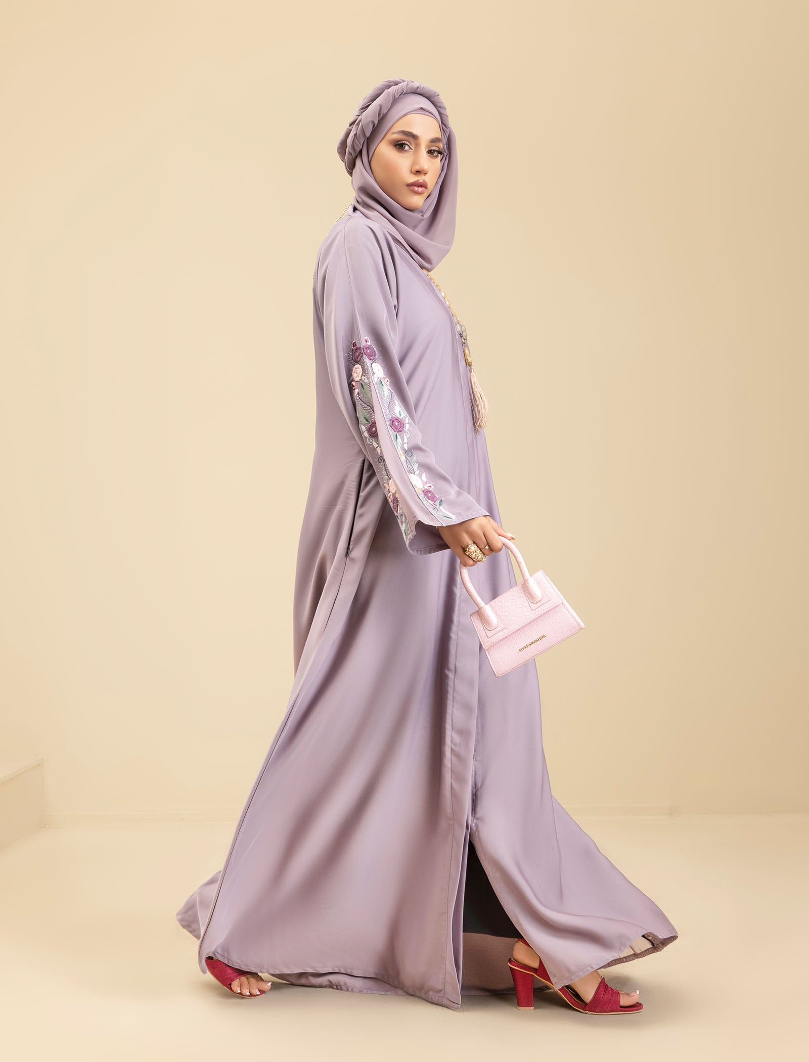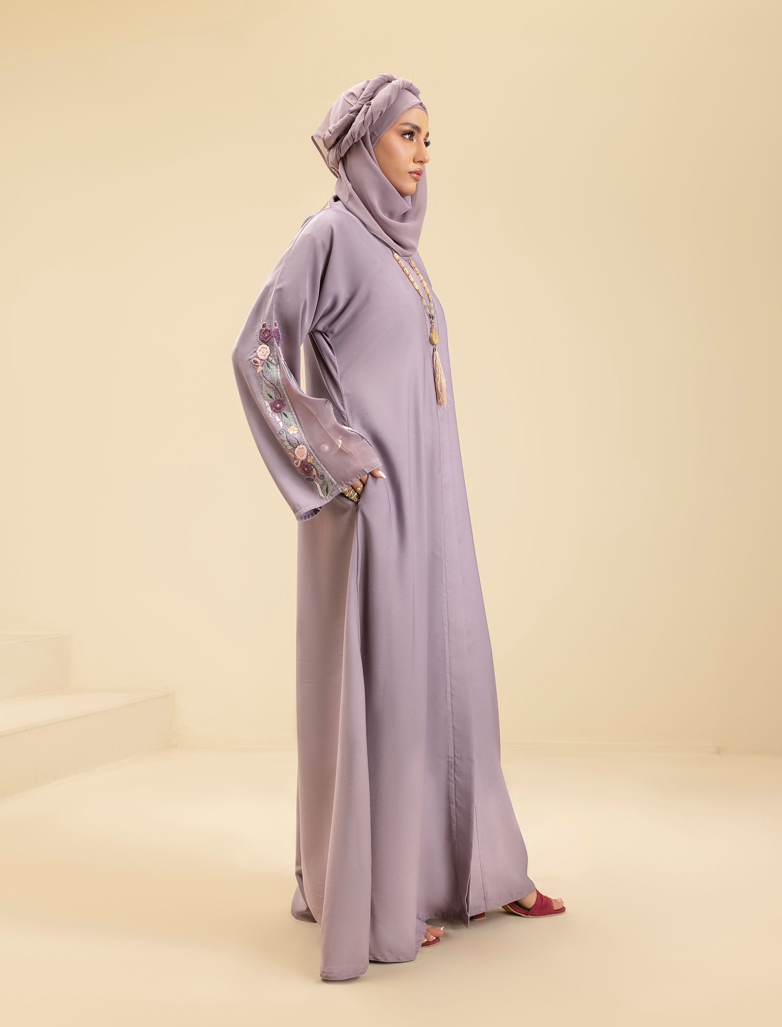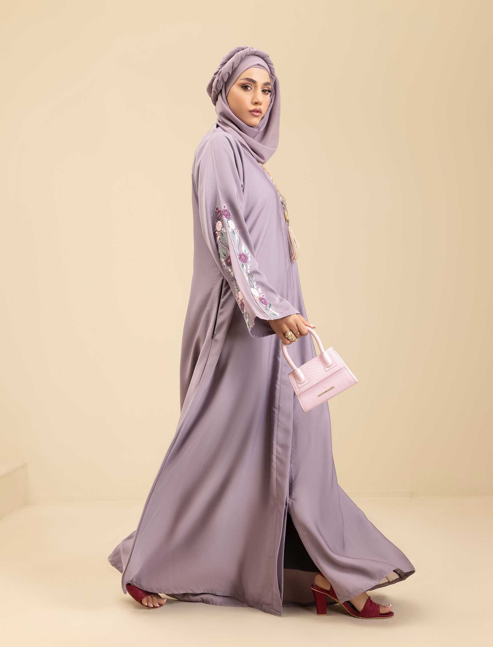 The Amethyst Glow abaya is the ideal choice for those who want to stay on-trend while embracing timeless elegance