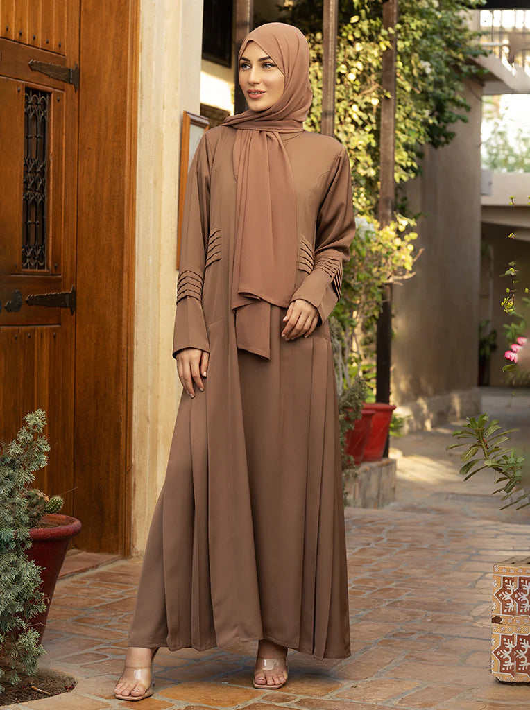 Discover elegance in the Ard Abaya, a maxi style masterpiece. This abaya features a harmonious blend of panels and pleats, meticulously crafted from premium Saudi Nidah fabric. It comes complete with a matching scarf and is available in a stunning array of colors. Styled to perfection, this abaya is your gateway to refined sophistication.