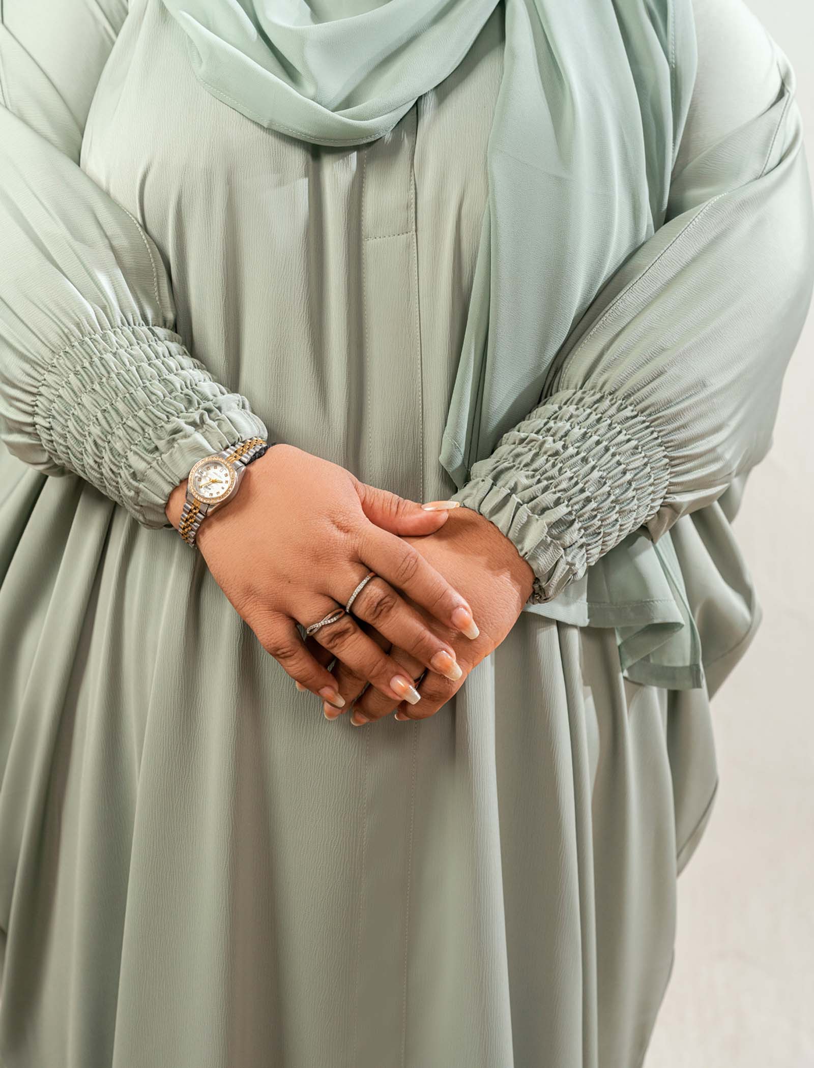 Graceful and airy, this butterfly-cut abaya is designed to offer maximum flow with minimal effort. The relaxed silhouette drapes beautifully, making it perfect for everyday wear, Umrah, or laid-back gatherings.