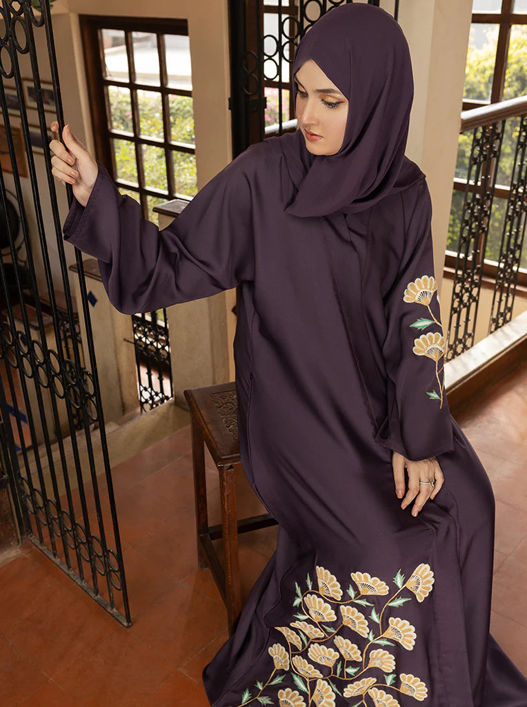 Style artistry with our Fayruz Abaya, a front open masterpiece adorned with intricate Anchor thread embroidery, complete with a matching scarf. This exquisite abaya is crafted from premium Saudi Nidah fabric.