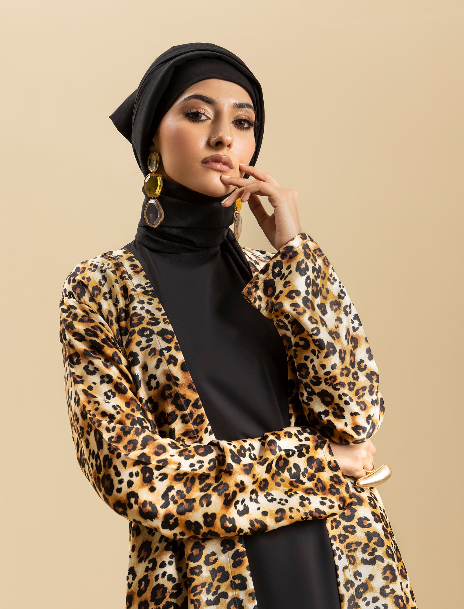 The Fierce Grace shrug is a statement piece, featuring a classic leopard print that never goes out of style. Its front-open design offers versatility, allowing you to carry it separately over various outfits or pair it with a black inner to create the perfect outerwear look.