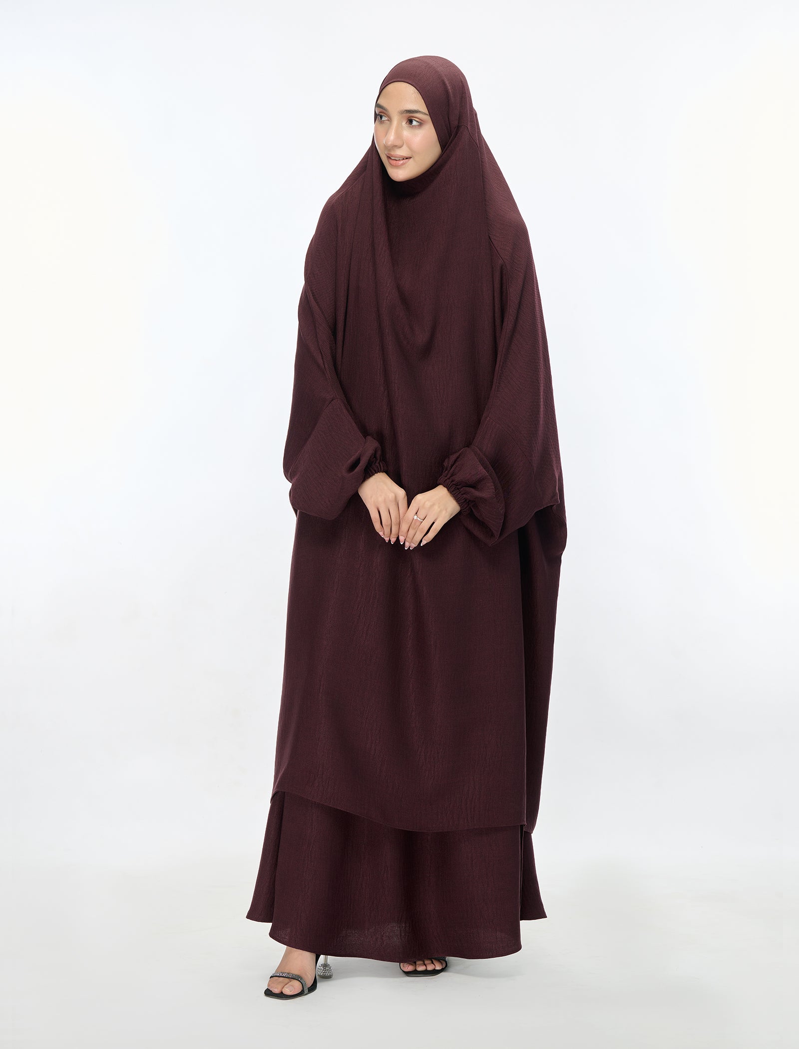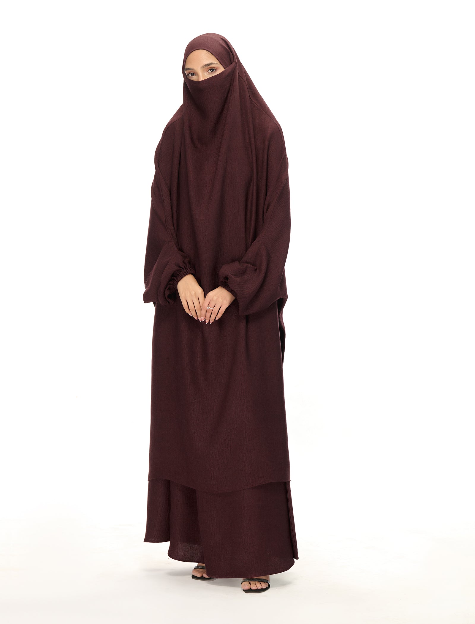 An easy-to-wear jilbab that provides full coverage without feeling heavy. Perfect for salah, Umrah, or daily modest wear.