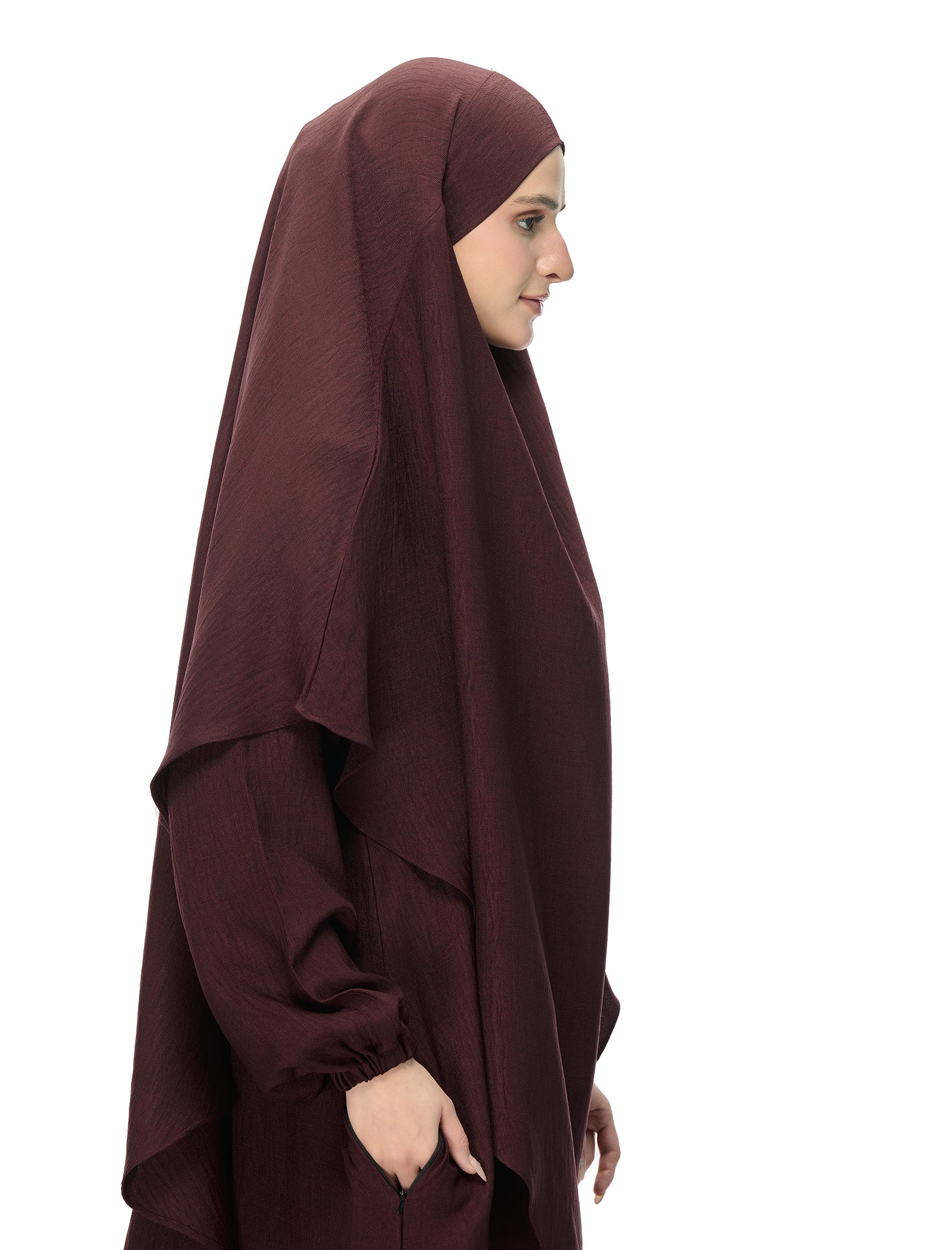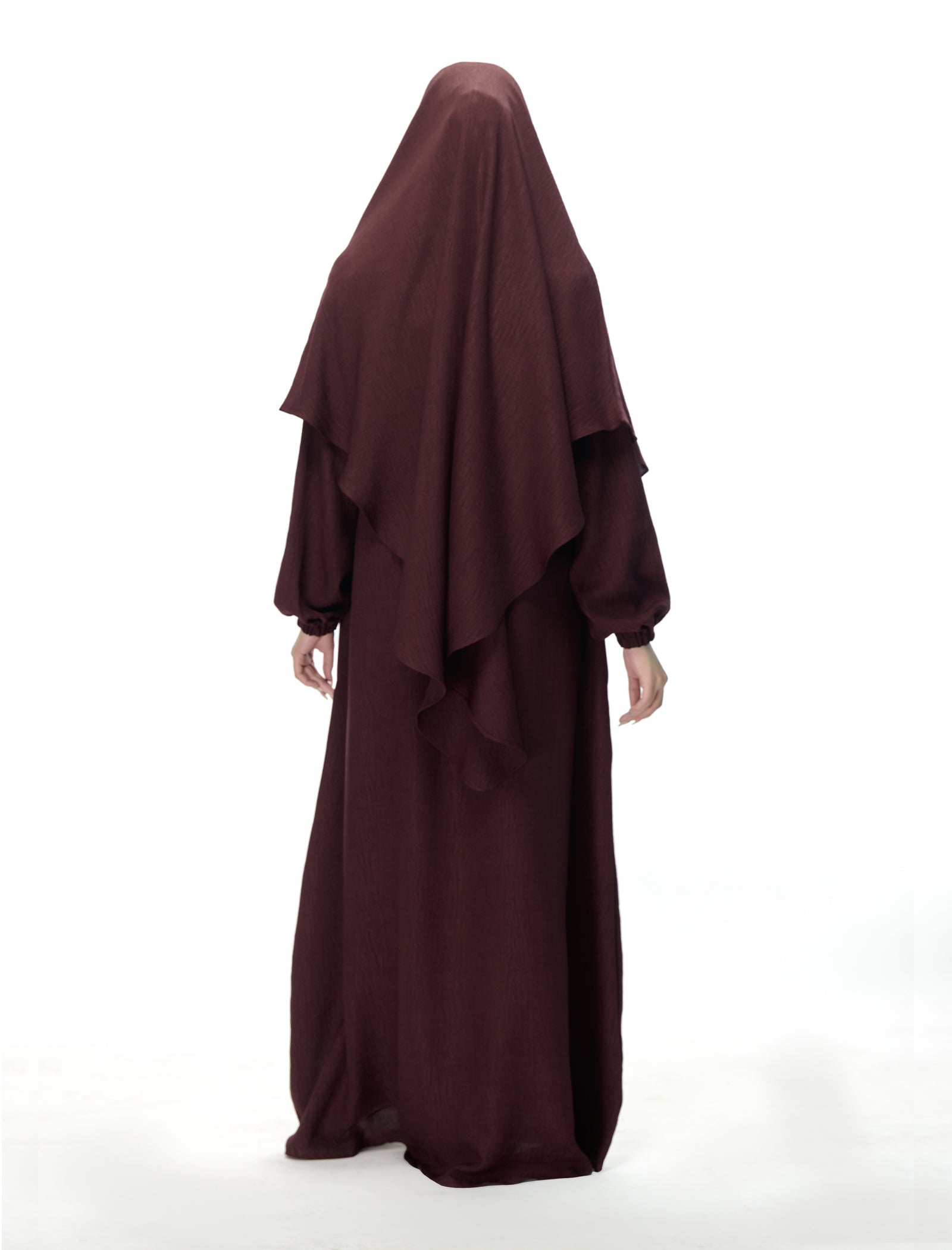 This khimar and abaya set gives full coverage with a graceful, flowing fit. Comfortable and easy to wear, it’s perfect for salah, umrah, and everyday modest dressing.