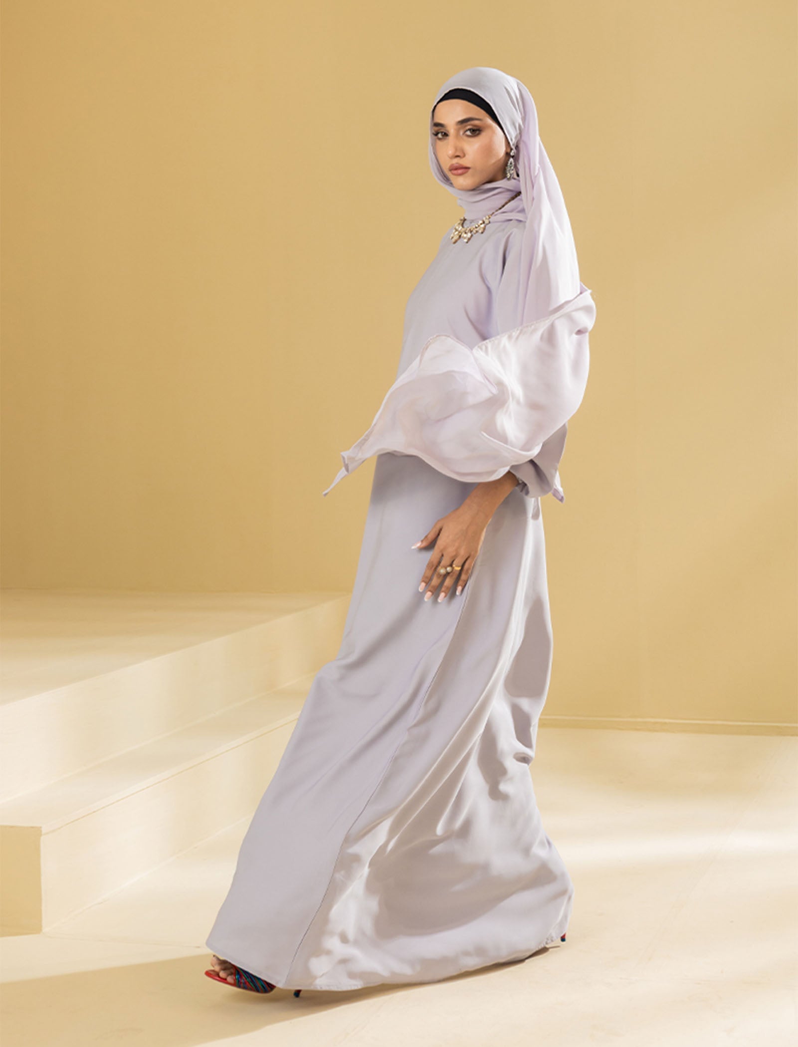 Elevate your everyday modest wear with this graceful lilac maxi abaya. Designed for style, comfort, and practicality, it is perfect for casual outings, Umrah journeys, or daily routine.