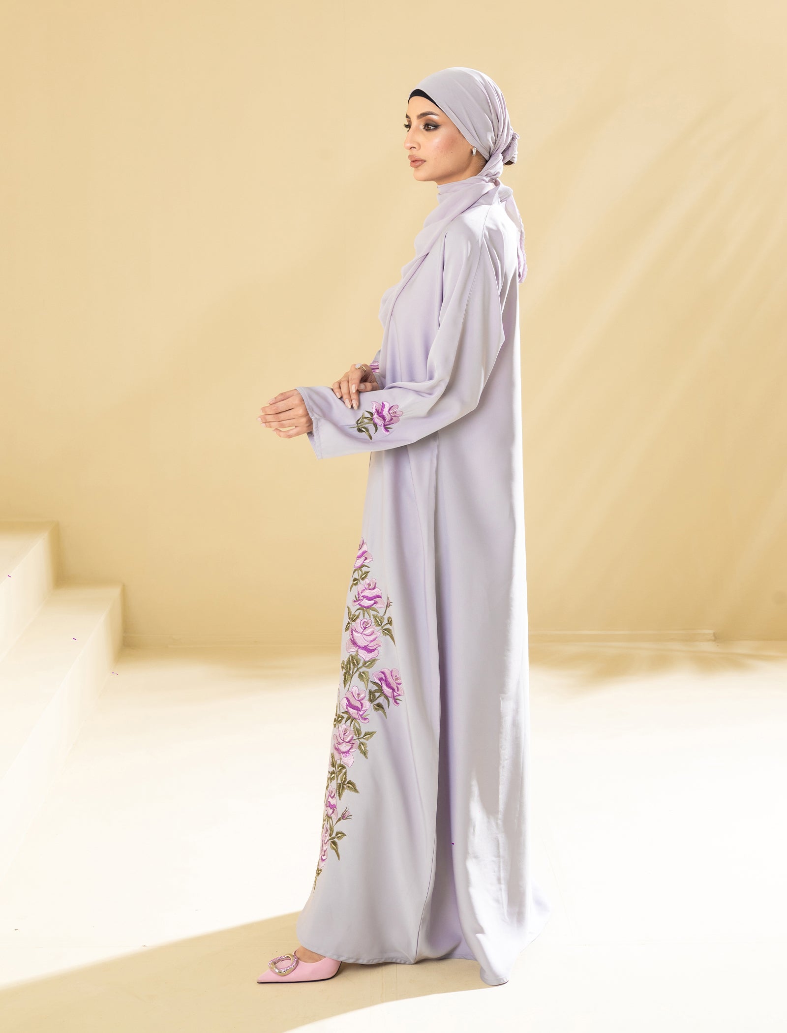 Celebrate every occasion in style with the Lavender Whisper. This light lilac masterpiece is adorned with delicate floral embroidery, offering a perfect blend of modesty and elegance. The front open, button-down design ensures versatility, making it a standout piece in your wardrobe.