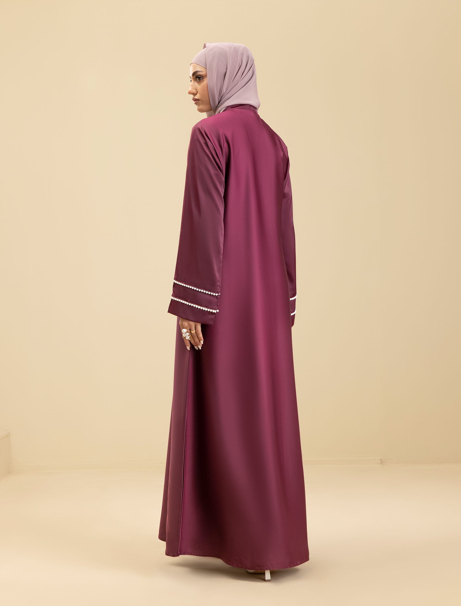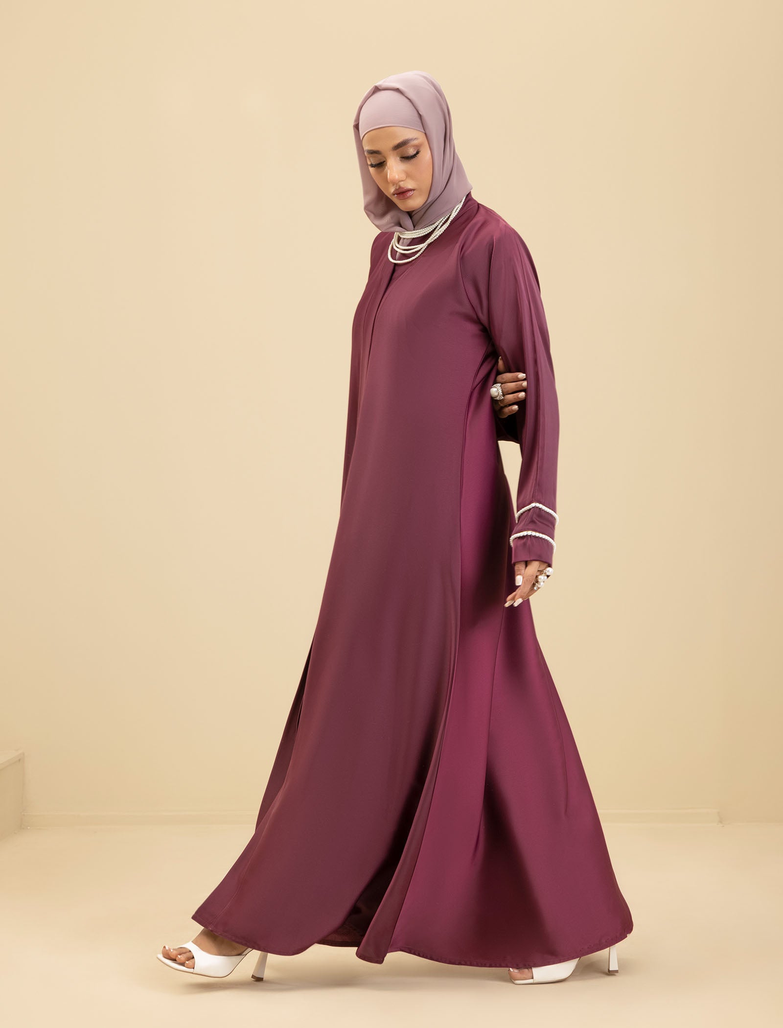 The Majestic Berry abaya is the perfect choice for those seeking timeless elegance and luxurious comfort for any occasion.