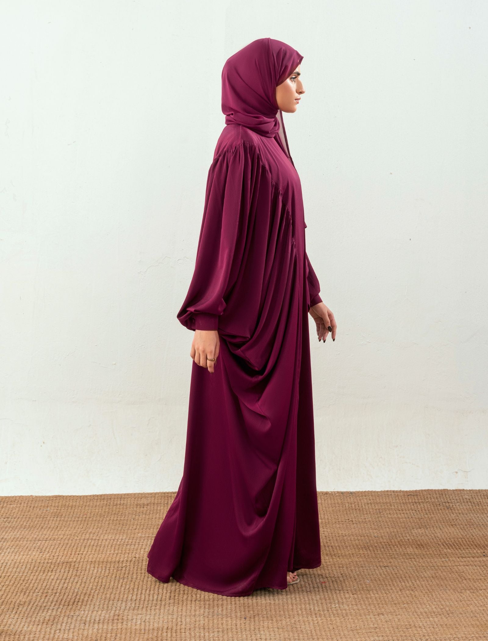 Bold, flowy, and effortlessly chic. This abaya is made to make a graceful statement. Its dramatic silhouette blends comfort with sophistication, making it perfect for dinners, dawats, or any moment you want to stand out without saying a word.
