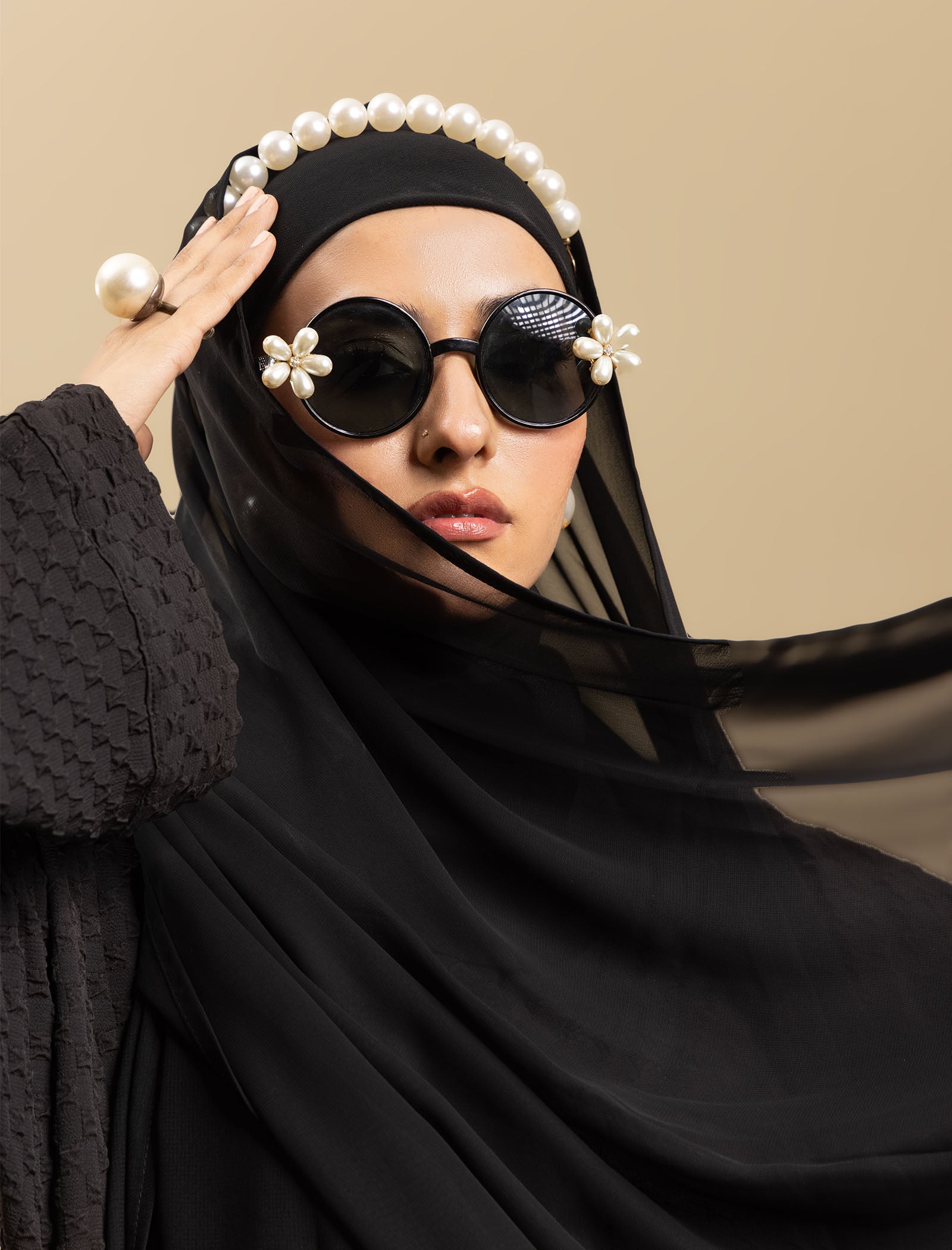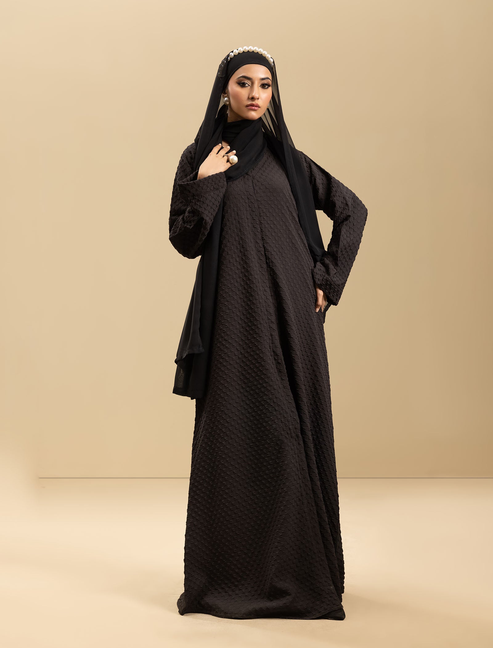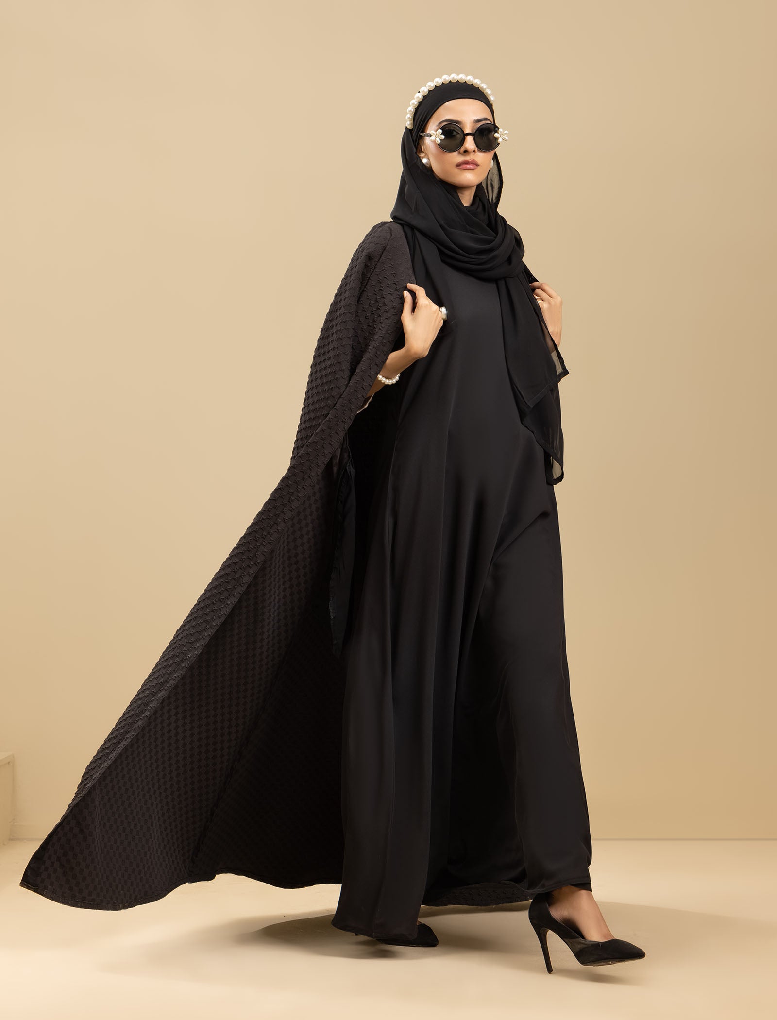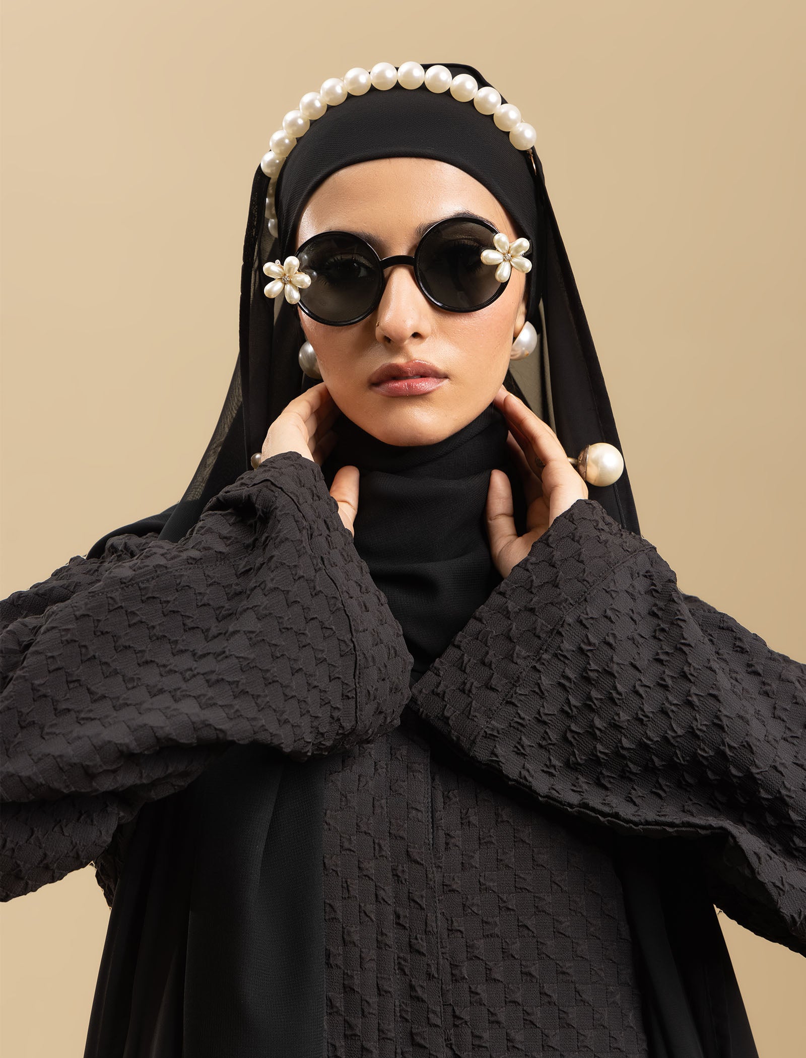 The Night Veil abaya is a limited edition piece, crafted from fancy black fabric that exudes luxury and elegance. The soft, comfortable touch of the fabric has been thoughtfully chosen to offer both style and comfort, making this abaya perfect for any occasion.