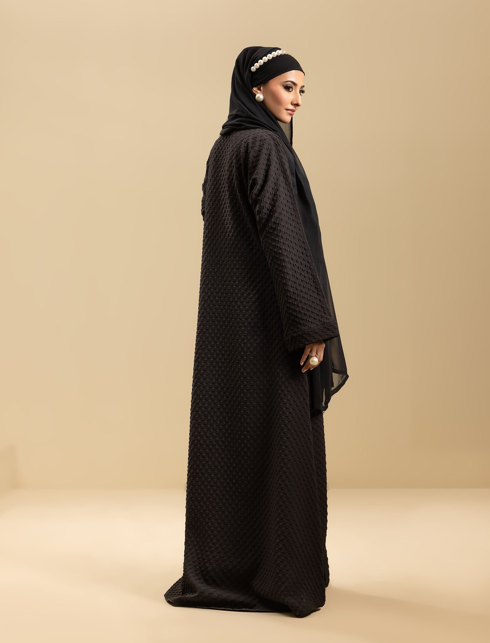 With its front-open design, this abaya can be worn as a classic piece or styled as a shrug over other outfits for a chic, layered look. Its minimalist yet elegant style ensures it complements a variety of outfits and occasions.