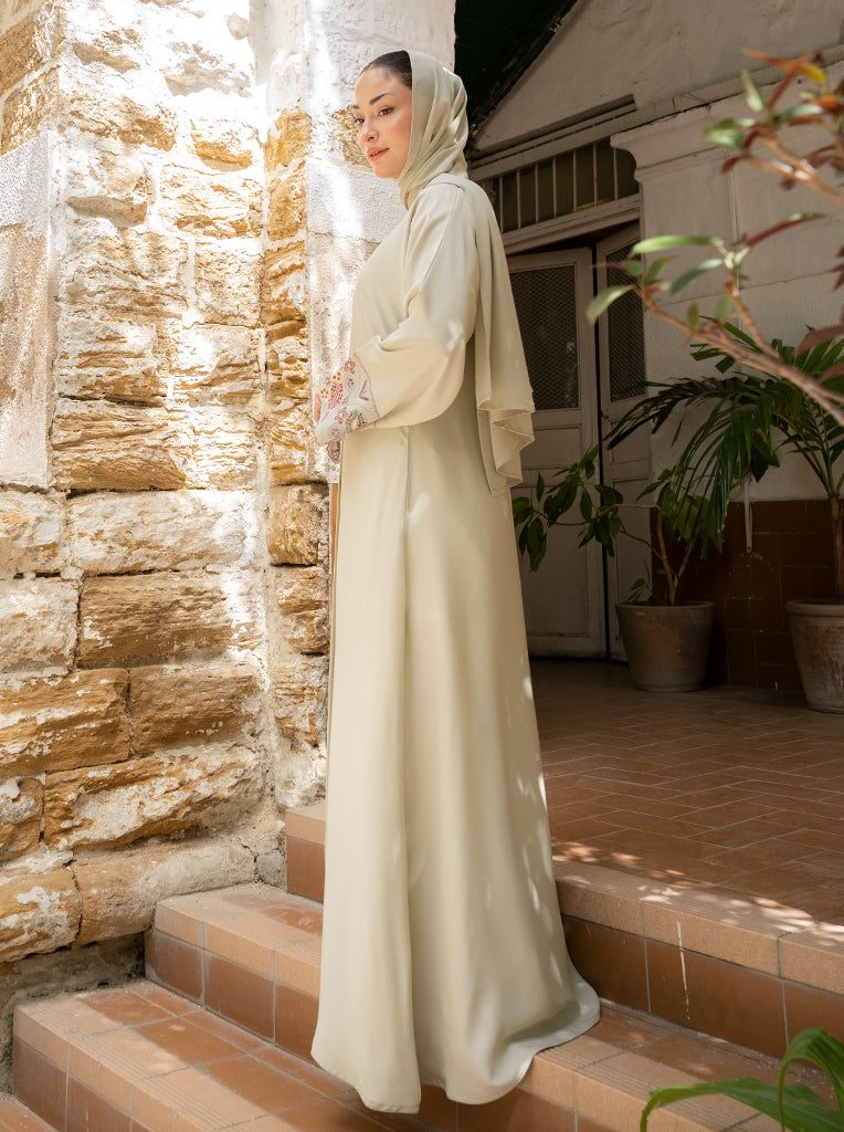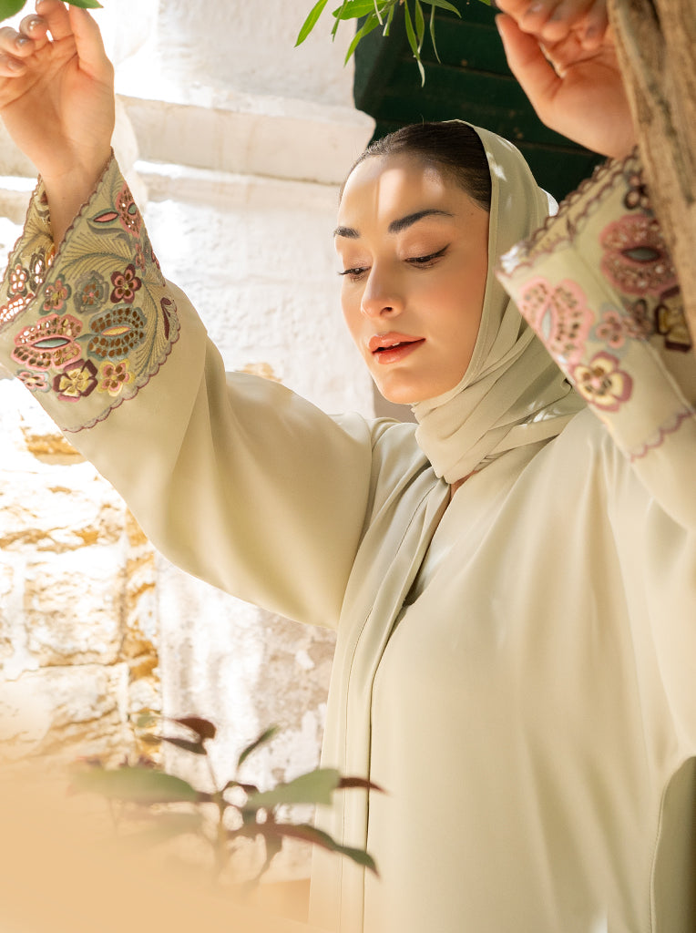 Step into timeless elegance with our pistachio-colored front-open abaya, adorned with captivating multi-color embroidery and intricate cutwork detailing. Renowned for its versatility and charm, pistachio stands as a perennial favorite among discerning fashionistas. Elevate your style effortlessly with this exquisite piece, perfect for making a statement on any occasion.