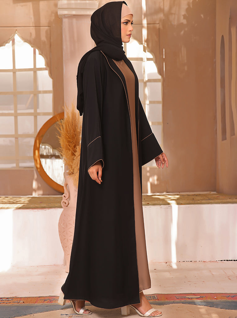 Sabina is a Coat style abaya, It makes you look classy yet elegant in a modest way. It can be carried in casual & formal gatherings. Beautiful pipein of matching inner enhances the beauty of the product.