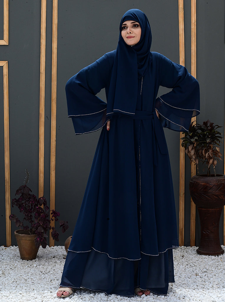 It is all in the name of this Abaya! A color so beautiful you cannot not have it in your wardrobe! The abaya is made of the finest quality of Chiffon Georgette, front open in style and doesn’t come with the inner!