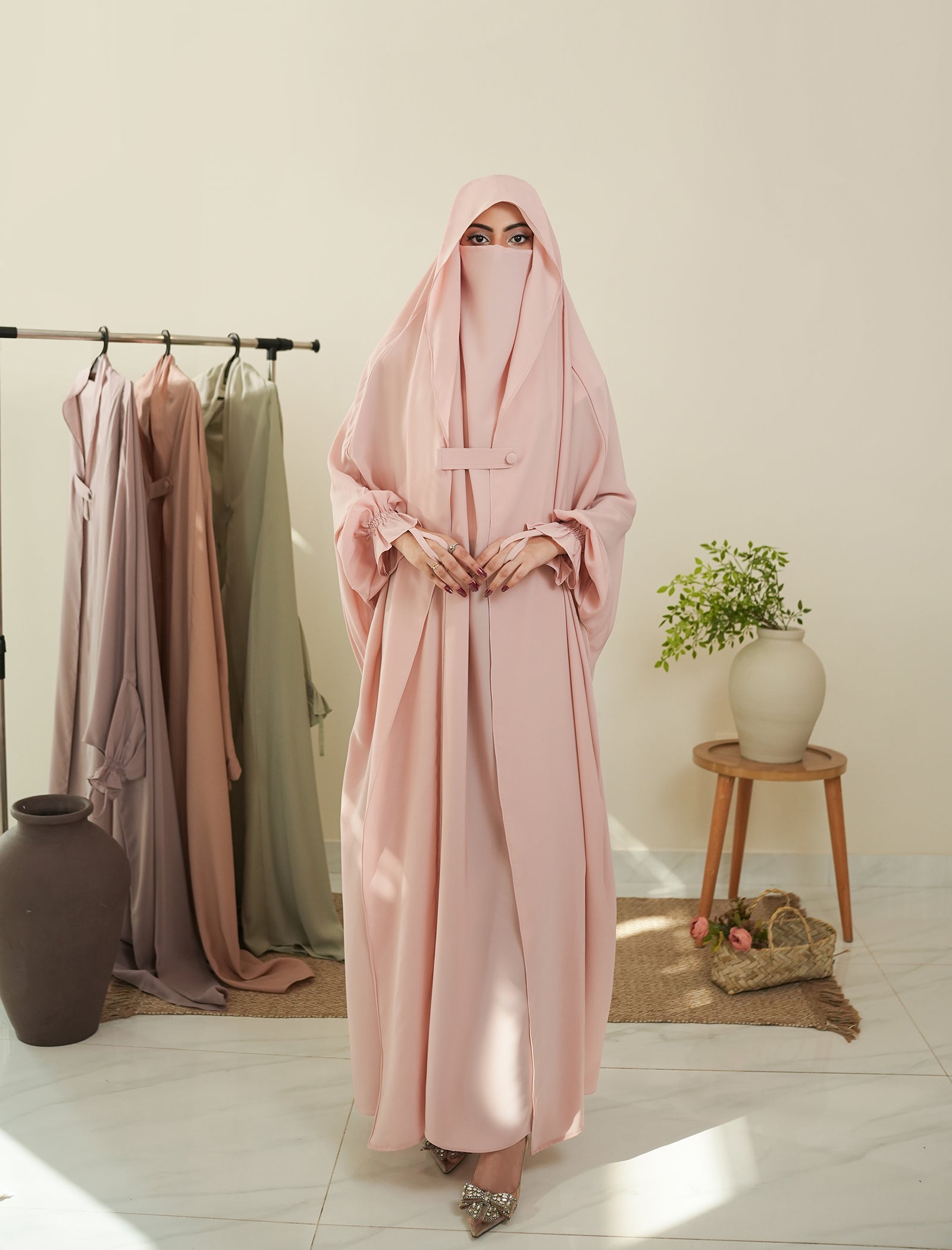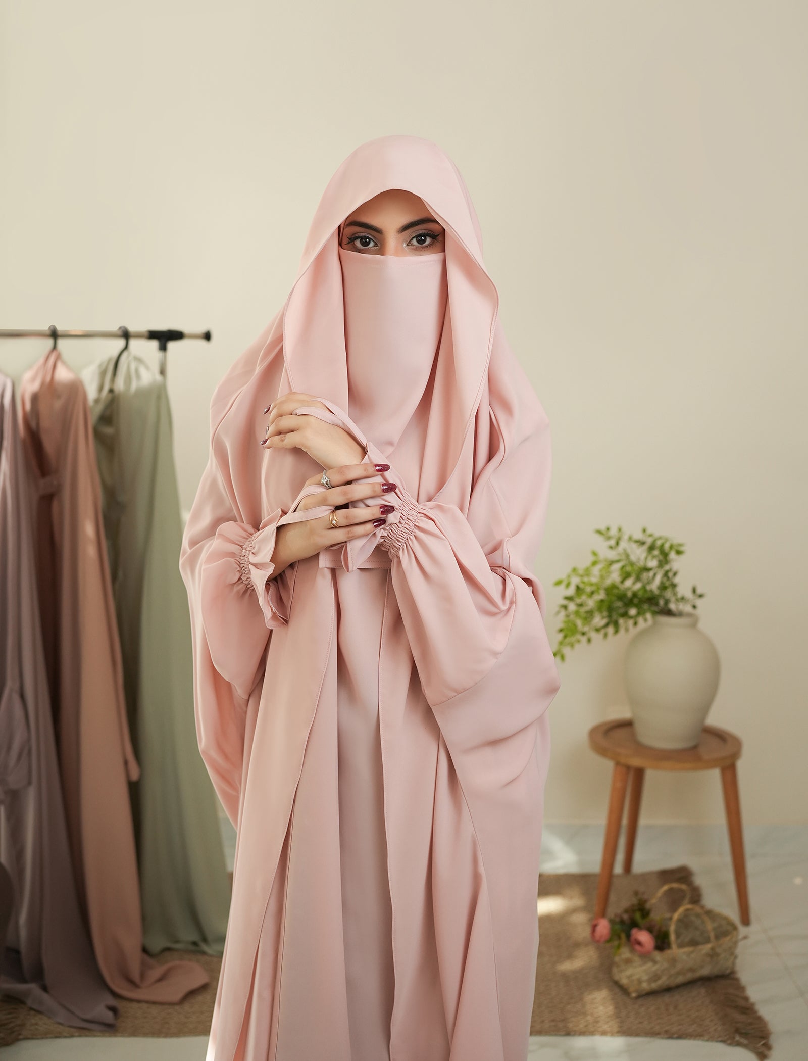 Experience comfort and modesty with this beautifully designed full-length Saudi Jilbab, crafted from lightweight, breathable fabric ideal for warm weather. Its flowing silhouette ensures ease and modesty, perfect for long hours of worship.